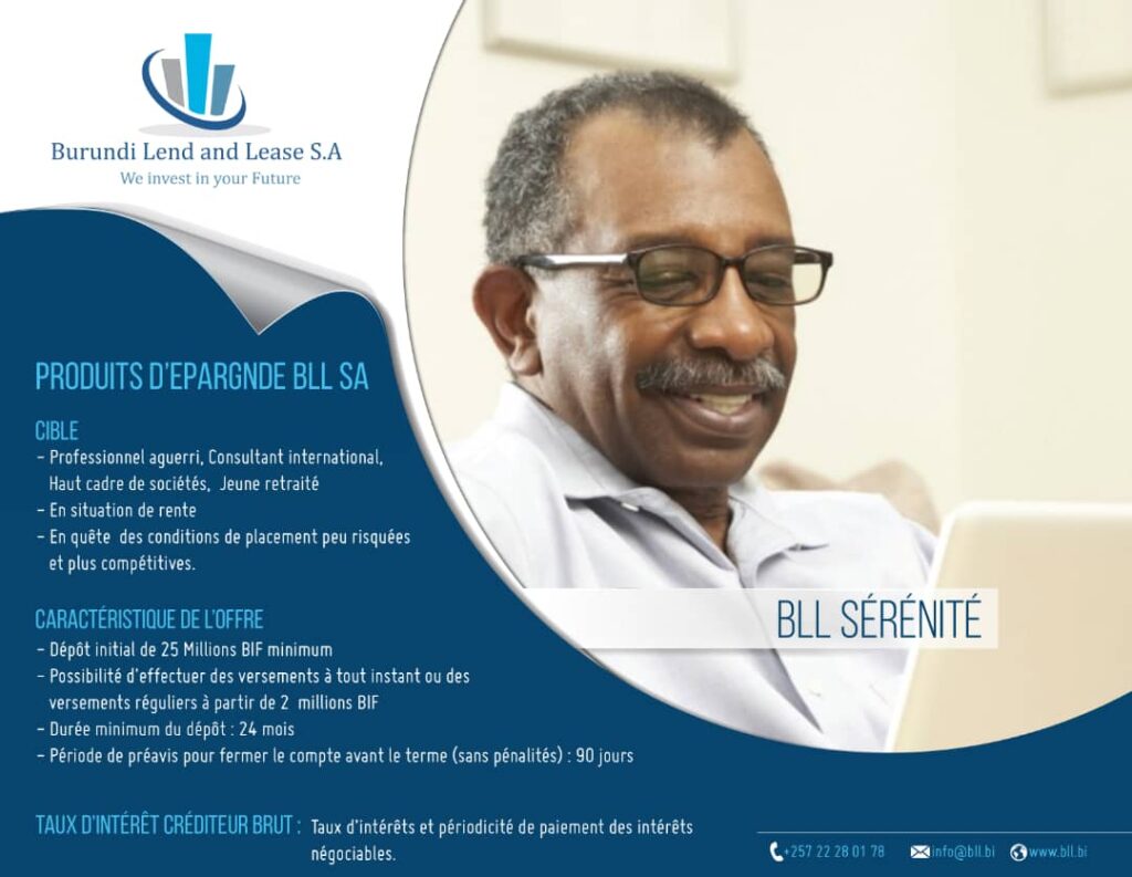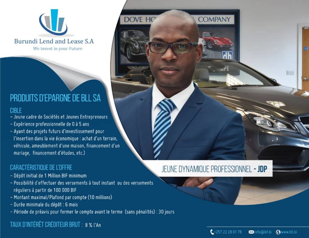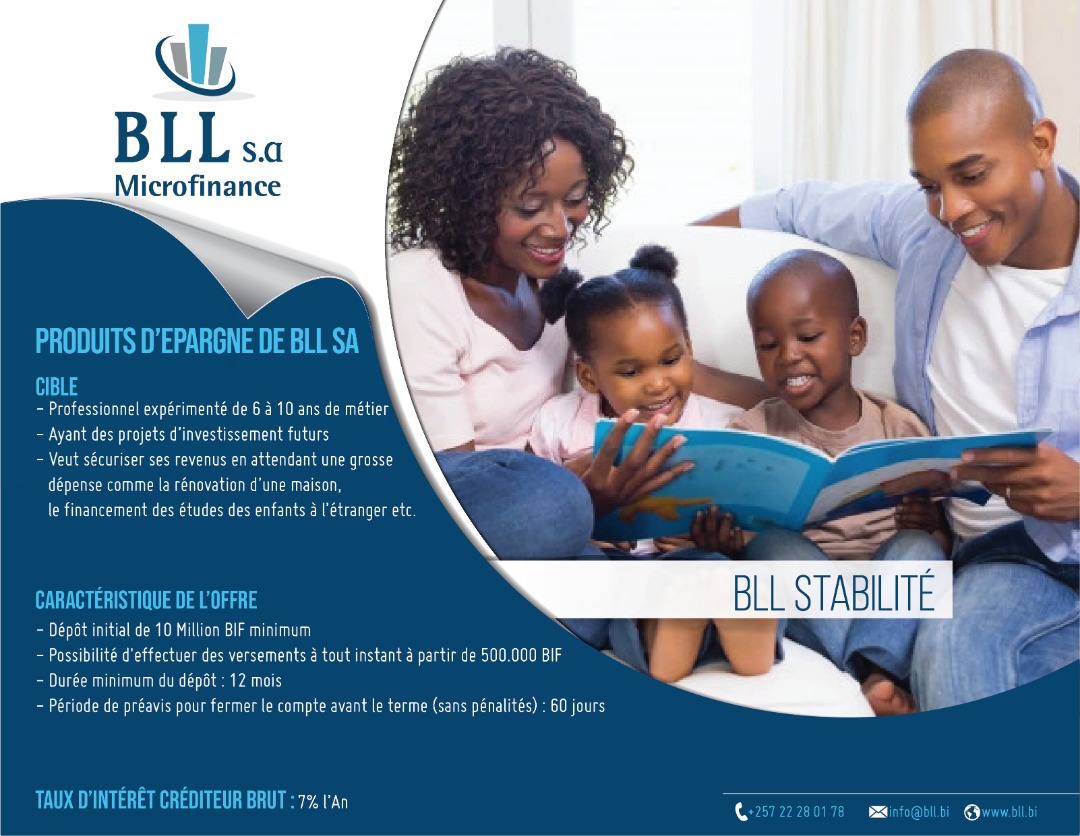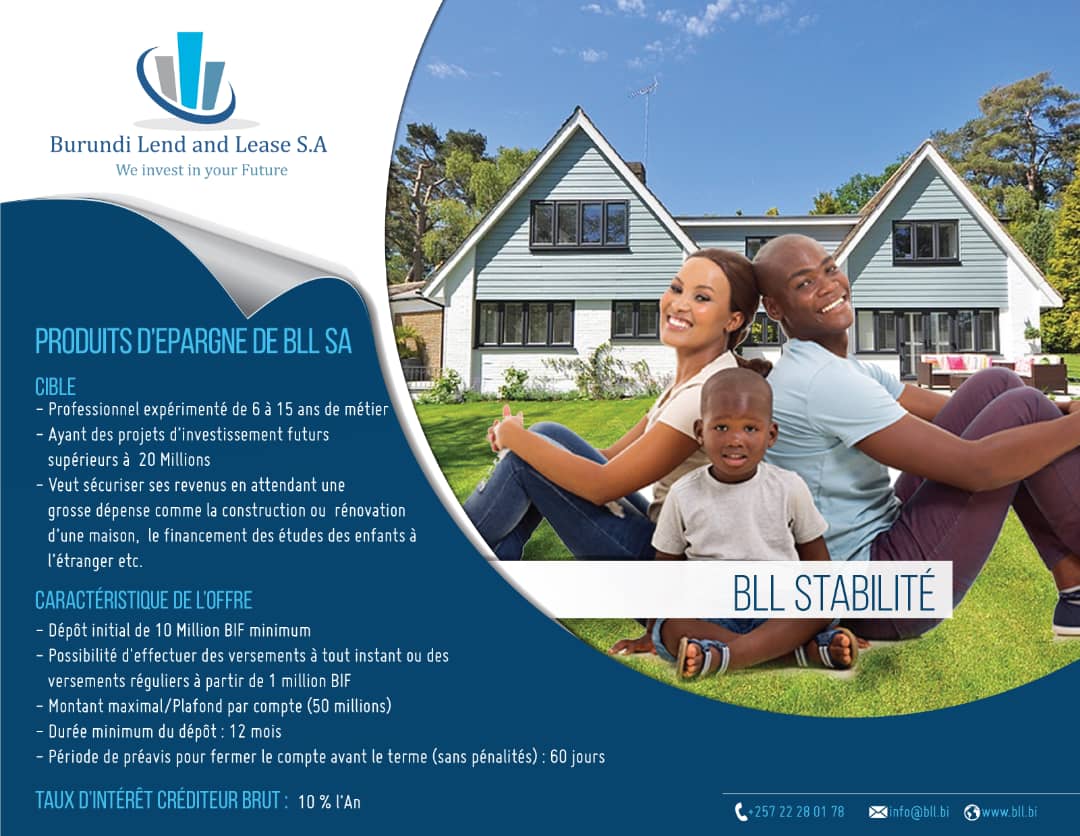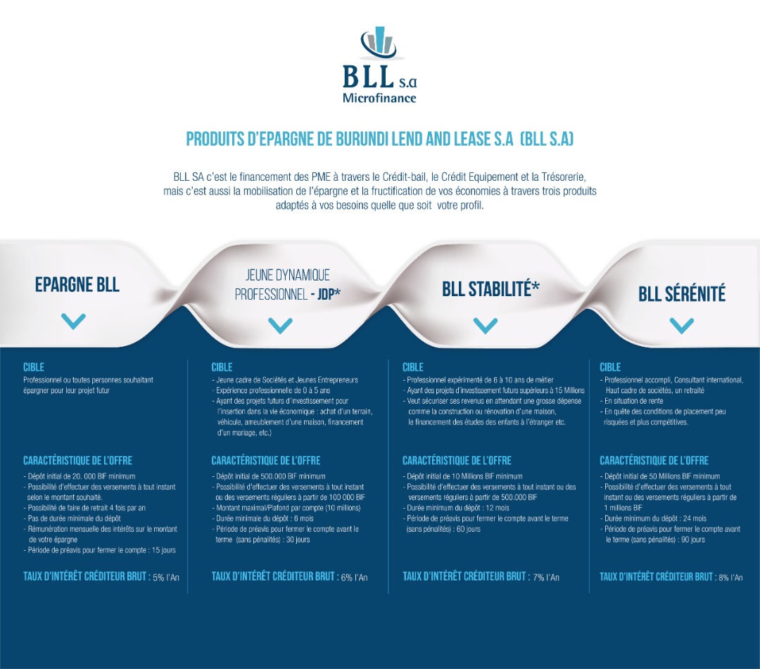 Burundi Lend and Lease S.A (BLL S.A) est une institution de microfinance dédiée au financement d’équipements professionnels à travers des solutions de crédit-bail (leasing) adaptées aux besoins des acteurs économiques du Burundi.